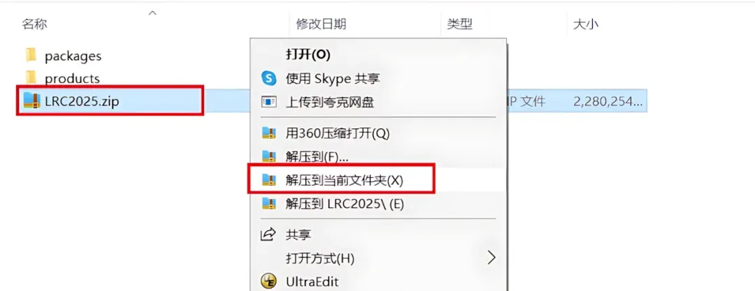 1.打开下载的Lr2024软件安装包,鼠标右击压缩包选择【解压到当前文件夹】。