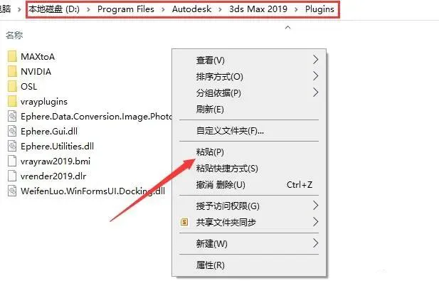 13.打开图示3ds Max软件路径,在空白处右键粘贴。