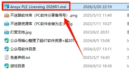 2.打开刚刚解压的文件夹,双击运行“Ansys PLE Licensing 2026R1.msi”文件