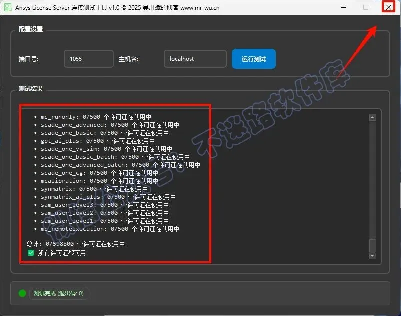 15.提示“所有许可证都可用”表示正常, 点击右上角的 “X “关闭即可