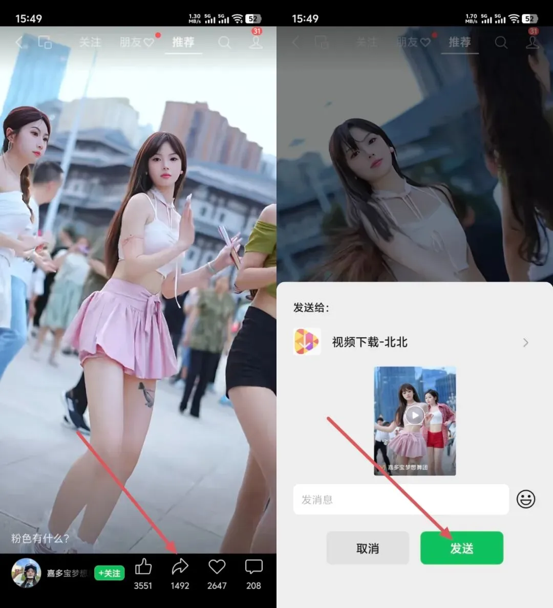 ① 进入视频号找到自己喜欢的视频,点击转发发送给机器人
