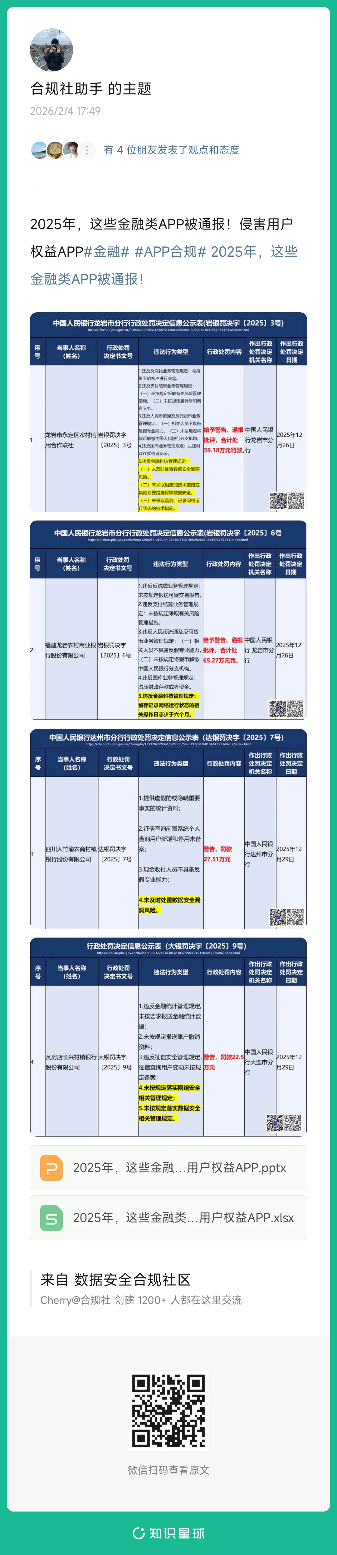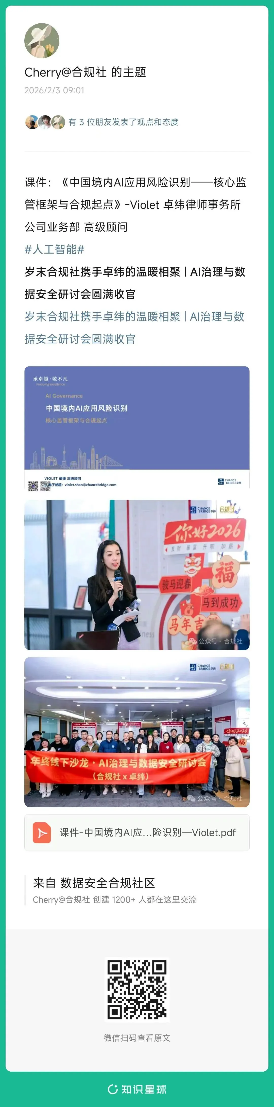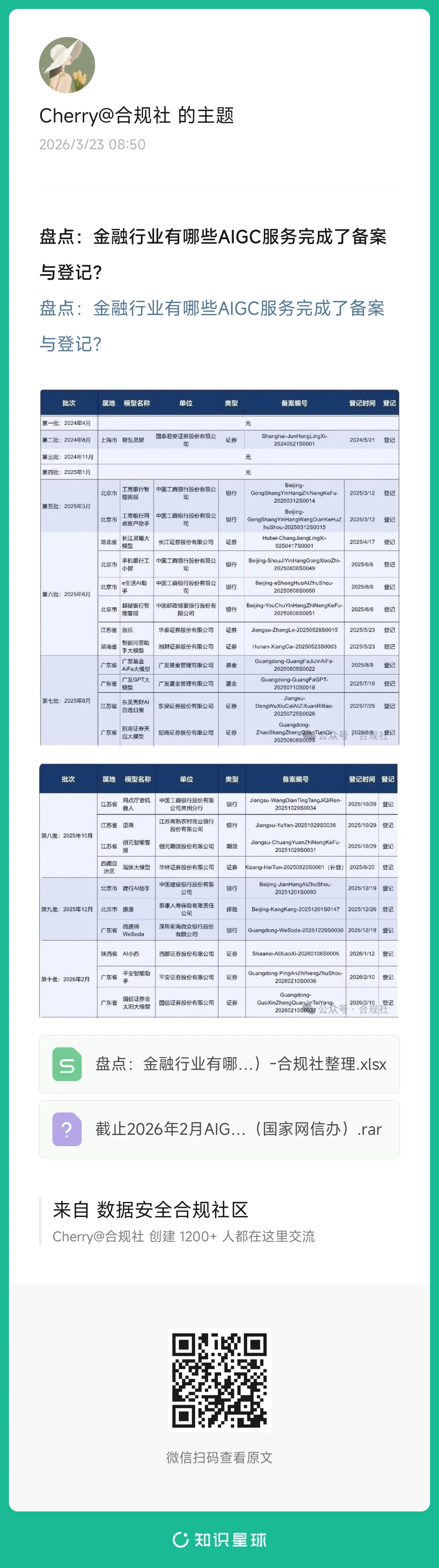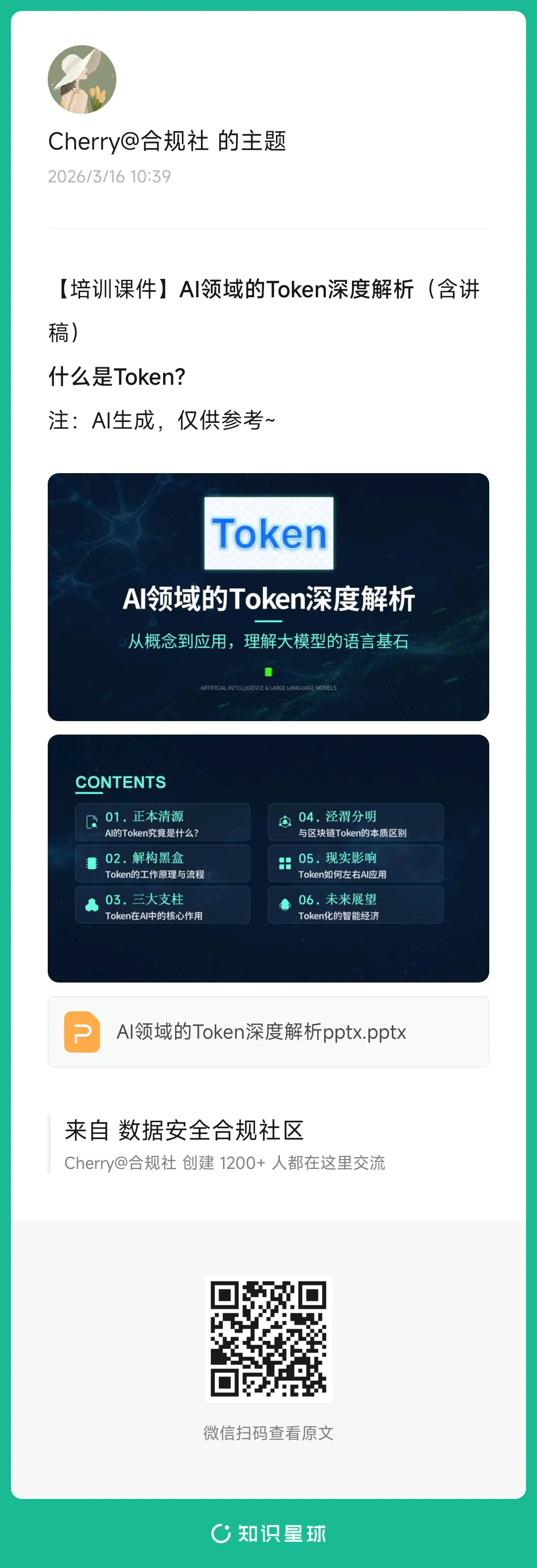 知识星球2-3月热门下载 | 14份可编辑PPT、评估报告模板等探寻合规之道,共筑数据保障之堡。专注为数据安全管理者、技术专家、隐私法务、律师等专业人士打造的知识共享与交流平台。点击 "合规社" > 点击右上角“···” > 设为星标⭐📖 推荐阅读:知识星球往期精选知识星球三月资料更新&精华帖 (可下载)四月这些干货你下载了吗?星球用户激励放送 | 福利实用干货、速来围观 | 合规社知识星球社区热帖(5-6月)13个精华主题 | 合规社知识星球社区热帖(7-8月)这些课件可下载!知识星球9月热帖&用户福利发放!星球社区10-11月热帖,会员不限下载!星球会员已1126位!超值宝藏社区,海量干货尽在这里 →数据安全合规社区:500天,再出发!领导转了合规社的汇编,太全了,打开5s就决定付费支持 | 星球12月热帖星球年度十大热门主题揭晓&1月下载榜单荣誉榜 | 合规社2025年度获奖名单