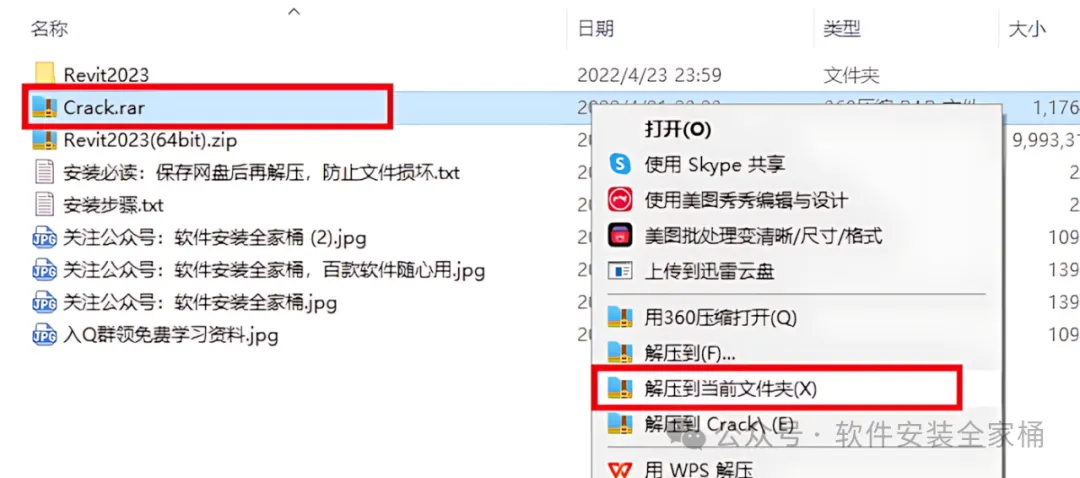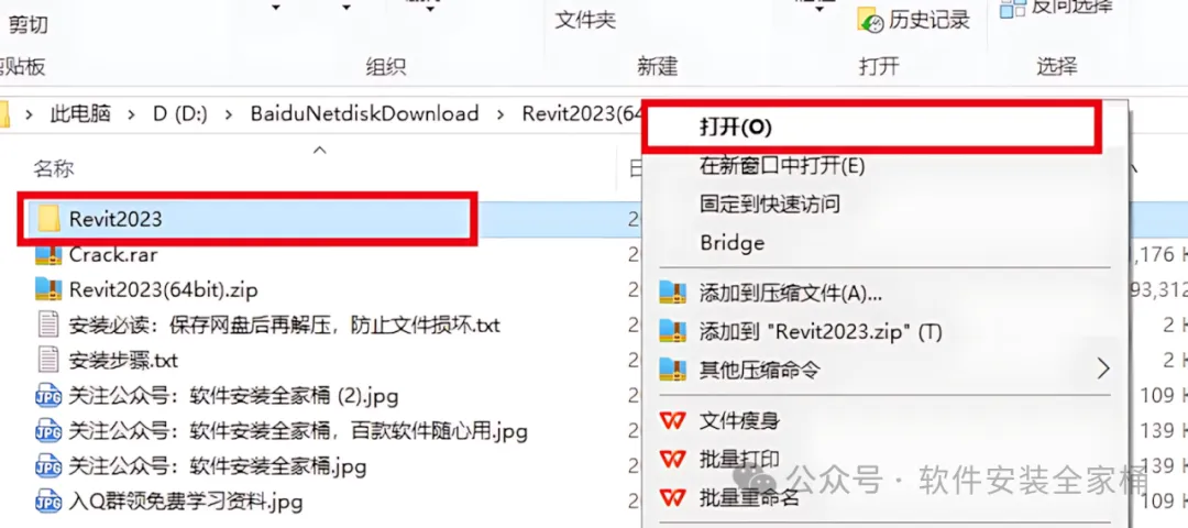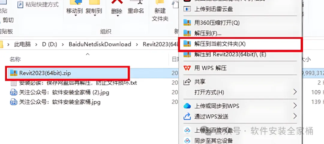 1.打开下载的Revit软件安装包,鼠标右击压缩包选择【解压到当前文件夹】。