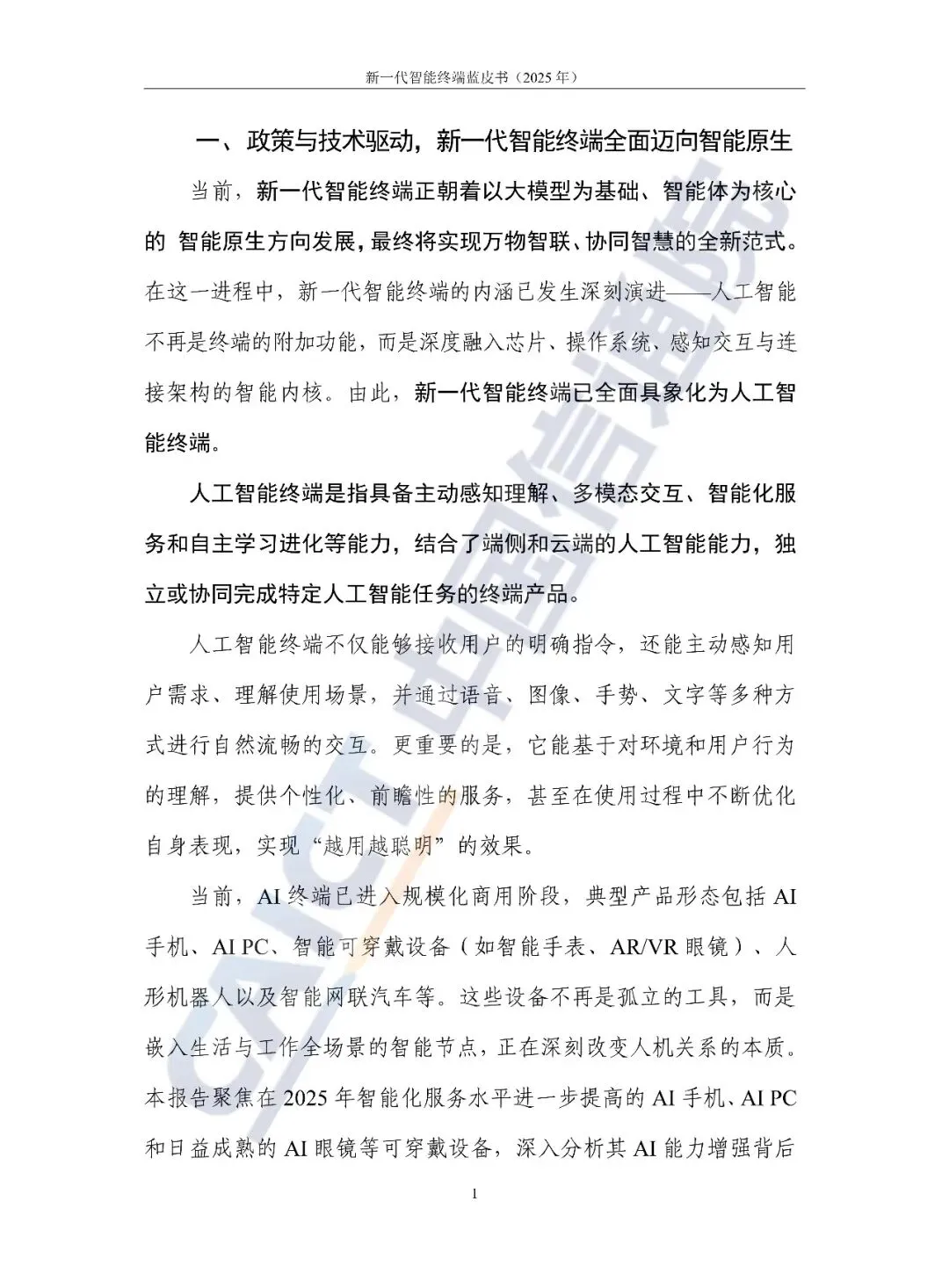 当前,新一代智能终端正朝着以大模型为基础、智能体为核心的智能原生方向发展,最终将实现万物智联、协同智慧的全亲新范式。在这一进程中,新一代智能终端的内涵已发生深刻演进--人工智能不再是终端的附加功能,而是深度融入芯片、操作系统、感知交互与连接架构的智能内核。由此,新一代智能终端已全面具象化为人工智能终端。