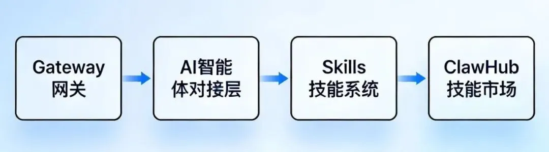根据OpenClaw官方的定义,其核心定位是开源的AI智能体执行网关,核心组件分为四个,完全匹配官网的架构设计: