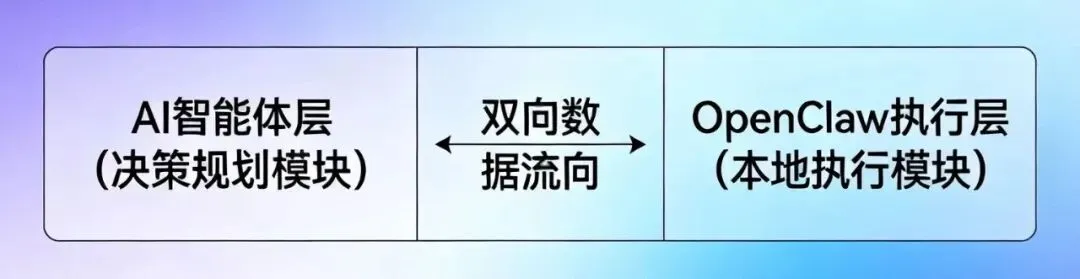 很多人混淆二者的定位,本质是没有看清二者在技术栈中的层级:OpenClaw是执行层的基础设施,它解决的是“智能体的决策如何落地成本地操作”的问题;而AI智能体是决策层的能力核心,它解决的是“如何理解用户的意图、规划任务的执行”的问题。