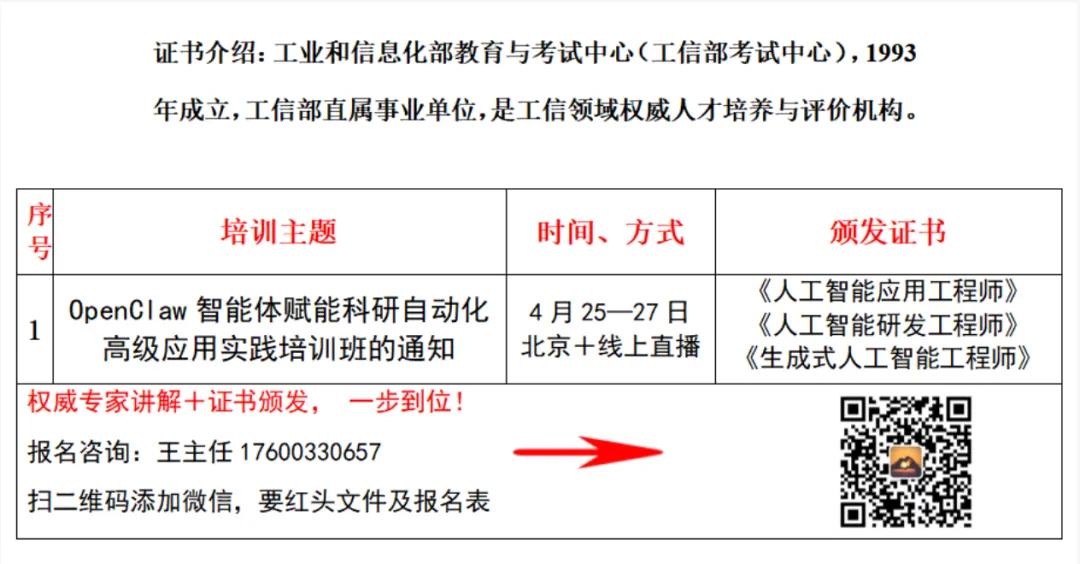 4月25日!OpenClaw智能体赋能科研自动化高级应用OpenClaw智能体赋能科研自动化高级应用实践培训班的通知