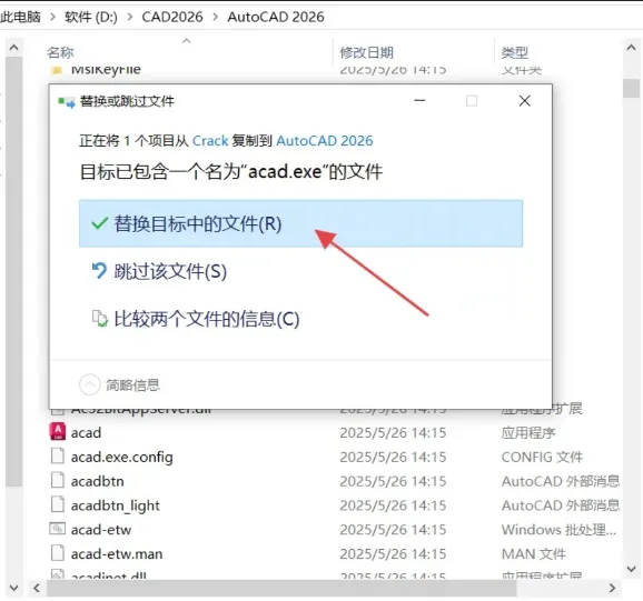 5.点击【替换目标中的文件】。