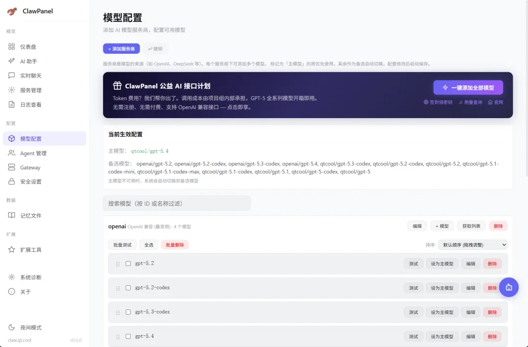 ClawPanel 就是专门给 OpenClaw 做的可视化管理面板,用 Rust + Tauri v2 做后端,前端是 Vanilla JS + Vite,不依赖重型框架,包体控制得相当克制。支持 Windows / macOS / Linux 桌面客户端,也有无 GUI 的 Web 版,ARM64 开发板(树莓派、Orange Pi、RK3588)也能跑。