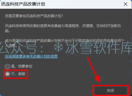 6.选择【不,谢谢】,点击【关闭】。