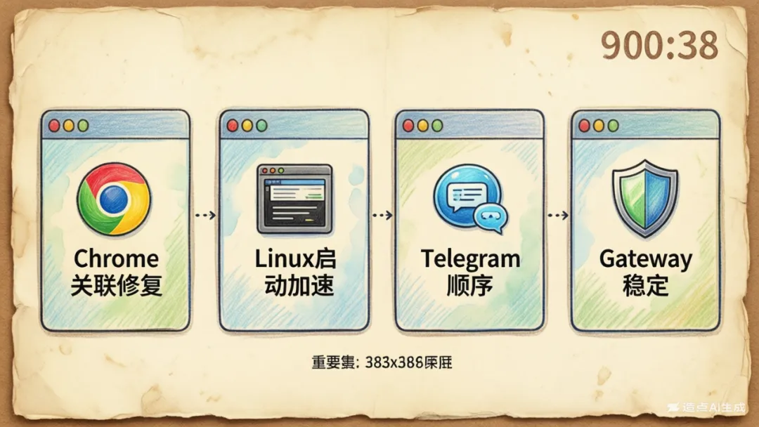 浏览器关联超时——在 macOS 上用 Chrome 插件关联 OpenClaw 的同学,之前有没有遇到过"等了 30 秒告诉我超时了"的崩溃感?这个修好了。