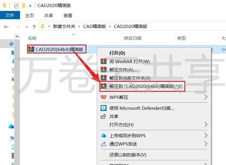 1.鼠标右击→压缩包,选择→解压到 CAD2020(64bit)精简版