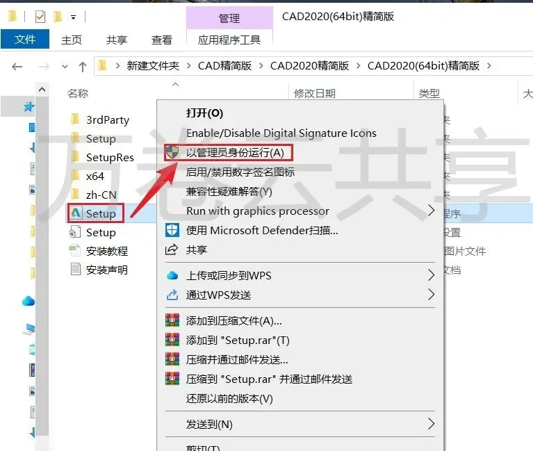 2.鼠标右击→Setup,选择→以管理员身份运行