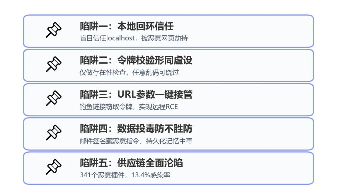 当概率引擎的"指令数据不分"遇上WebSocket网关的"权限配置疏漏",这套系统就成了四面透风的集市。以下是OpenClaw部署中最容易踩中的五大致命陷阱。