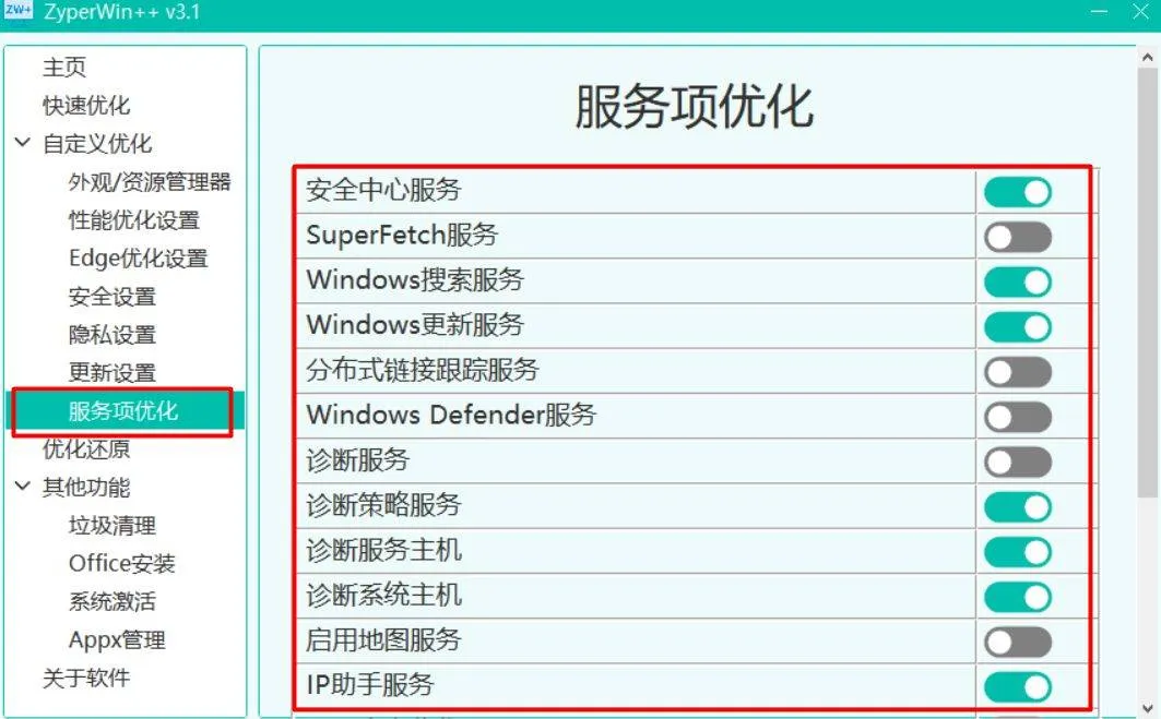 后台服务优化:ZyperWin++会智能调整后台服务项,关闭那些占用资源但不常用的服务。 软件可以帮你释放更多的可用内存和CPU资源,让应用程序运行更加流畅,特别是在配置较低的电脑上效果更为明显
