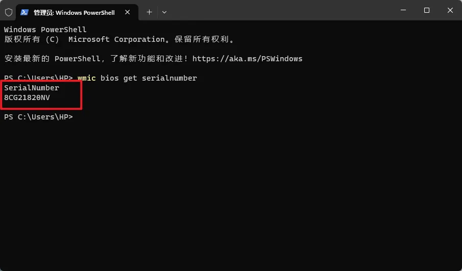 除了惠普自带的软件外,在 Windows11 系统,我们还可以尝试通过系统终端来查看序列号。