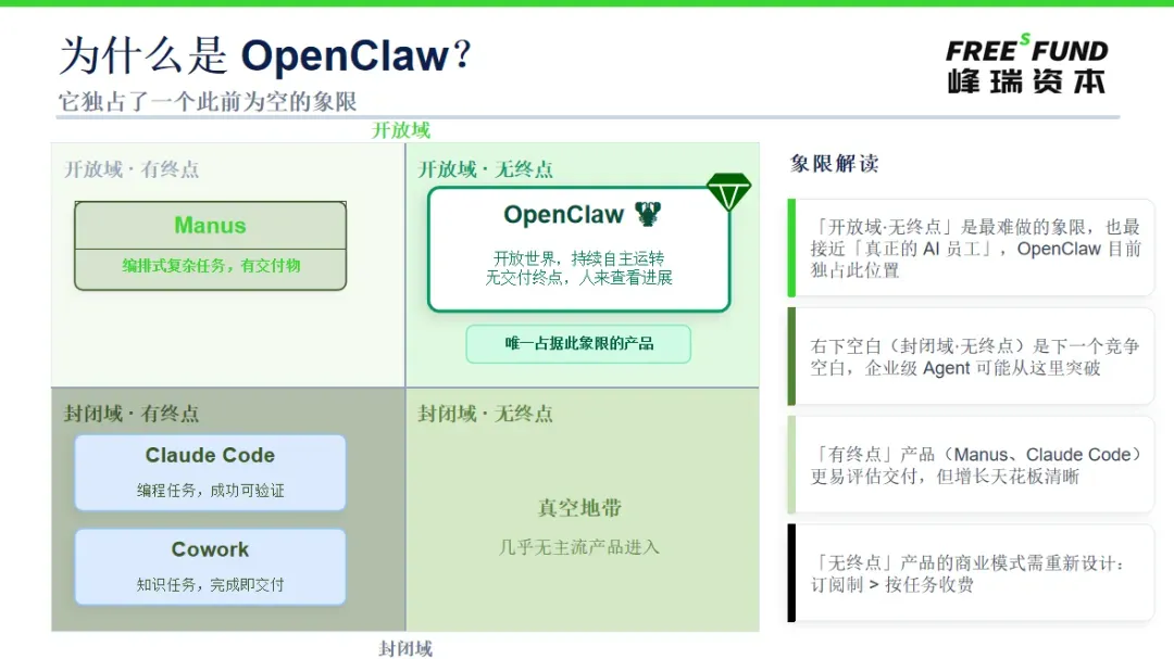 为什么说 OpenClaw 是唯一占据开放域+无终点象限的产品?