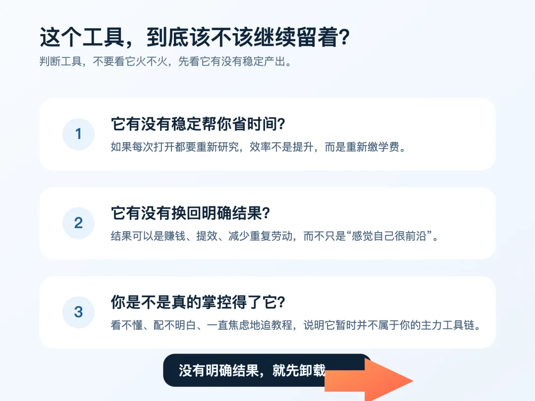 我现在越觉得,AI 工具使用最重要的能力,不是会不会装,而是有没有勇气去思考有没有必要把它删除。