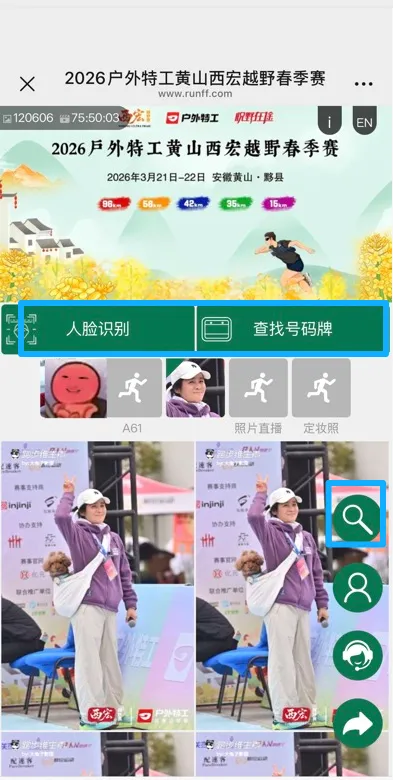 2、通过号码布查询,比赛中将号码布佩戴在胸前位置的照片会更好查询;