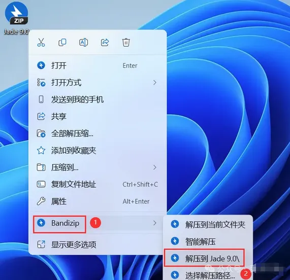 1.将文件下载到电脑后鼠标右键,解压到【Jade 9.0\】。