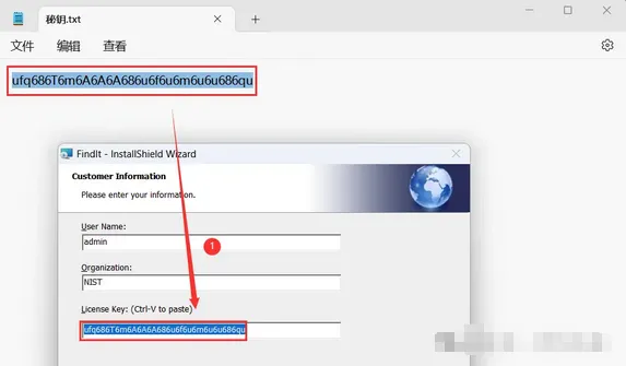 18,回到【2.Findlt 2017】文件夹,找到【秘钥】文件,打开文件,复制内容将复制的秘钥输入到【License Key】内,然后点击【Next】【附新密钥:uhT2h2u2u2A2A2f282u2u28272q2u282qu】。