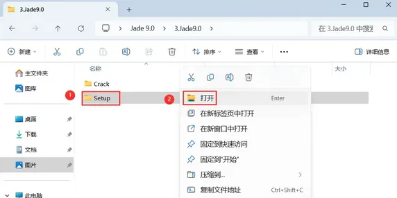 31,回到3.Jade9.0文件夹,找到【Setup】文件夹,右键【打开】它 。