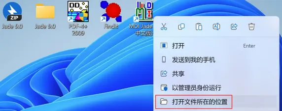 38,在桌面找到【MDI Jade 9.0中文版软】图标,鼠标右键,点击【打开文件所在位置】。
