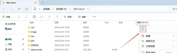 7,在打开文件夹的空白处,鼠标右键,选择【粘贴】。