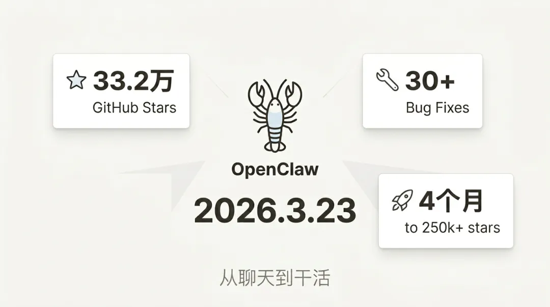 OpenClaw,那个被大家叫做"龙虾"的开源 AI 助手,又更新了。GitHub 上 33.2 万颗星,开发者社区炸锅,连英伟达 CEO 黄仁勋都说它是"有史以来最重要的软件发布"之一。