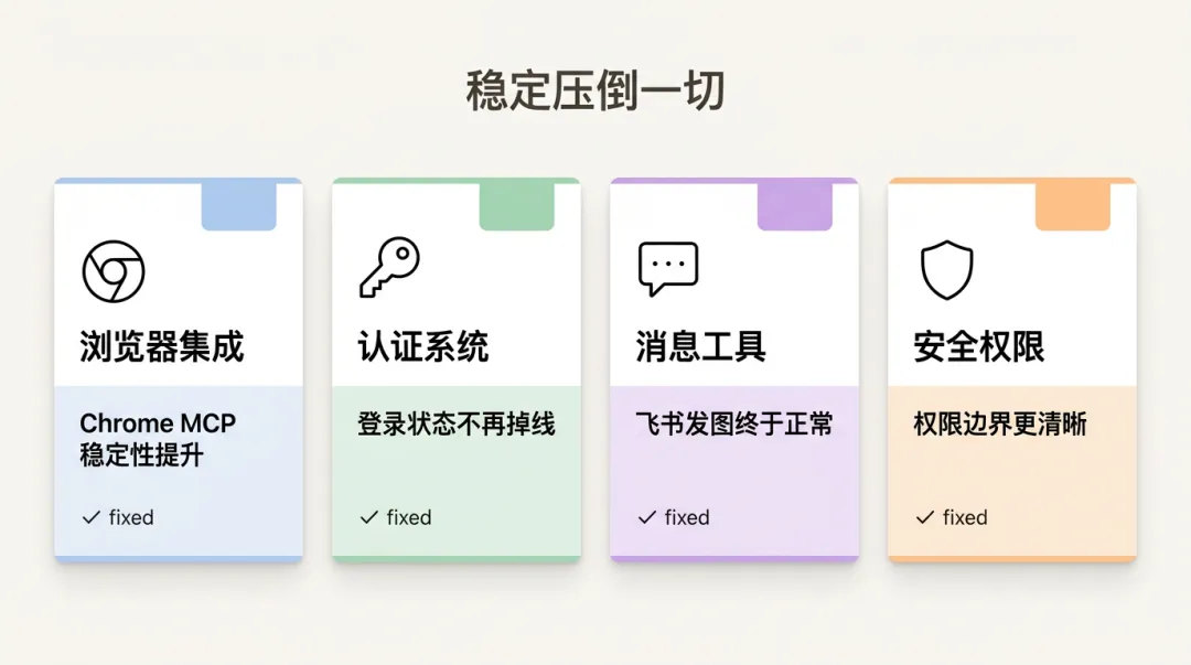 没有炫技式的新功能,没有"革命性突破"的营销话术,就是一个一个地修 bug、补短板。但这恰恰是最重要的。