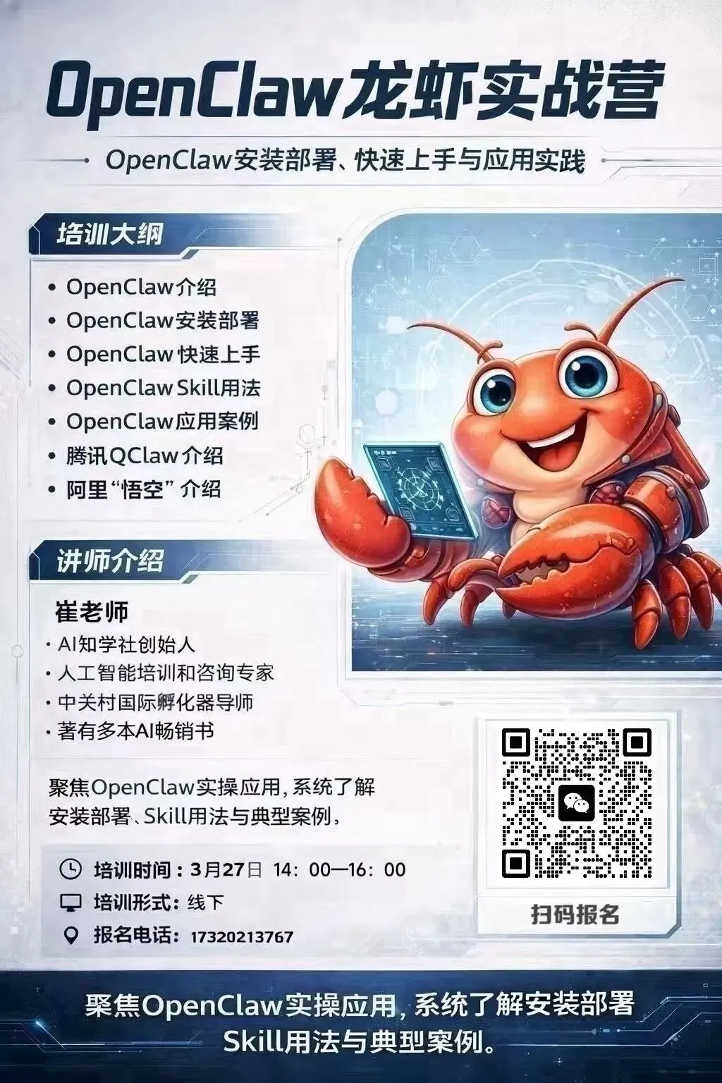 本期“青春领学”邀请到AI知学社创始人、人工智能培训和咨询专家、中关村国际孵化器导师崔老师做客青春会客厅,为你揭秘OpenClaw实操应用~活动名额有限,快来报名参与吧!