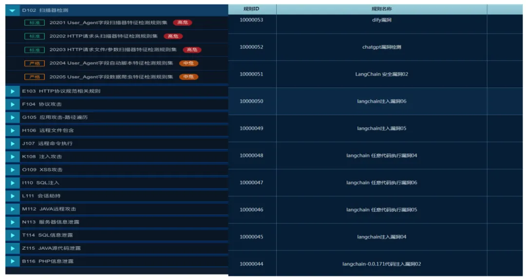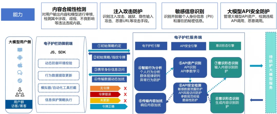 API防护:具有针对大模型API访问控制能力,参数合规、扫描防护,敏感数据监测的能力。