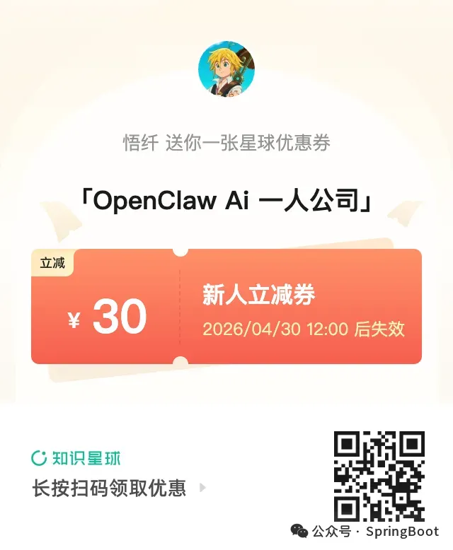 最近开通了知识星球,想一起的,可扫码加入OpenClaw·Ai一人公司一起探索Ai一人公司变现,