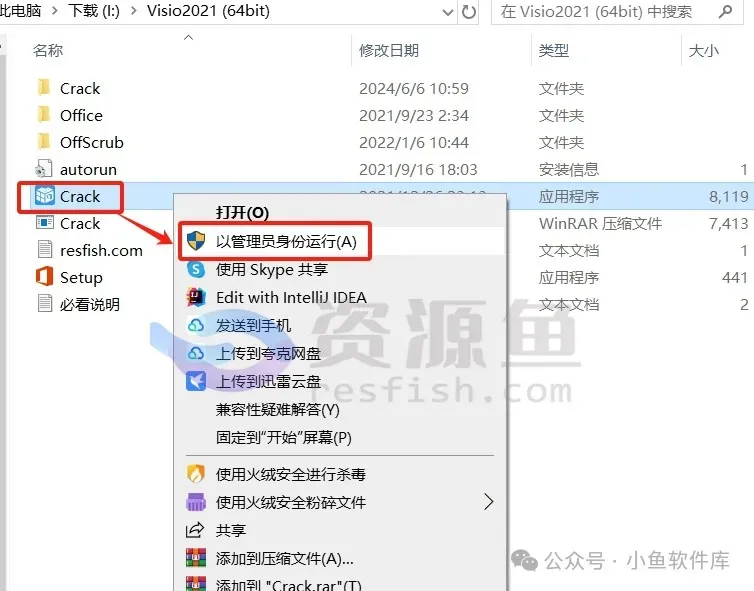 4、鼠标右击 — Crack — 解压到当前文件夹