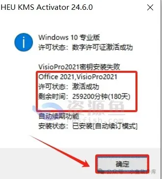 9、这样就是激活成功了,点击 确定