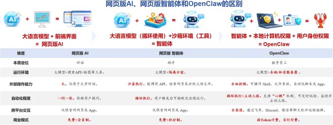 (2)OpenClaw与网页版AI和网页版智能体的区别