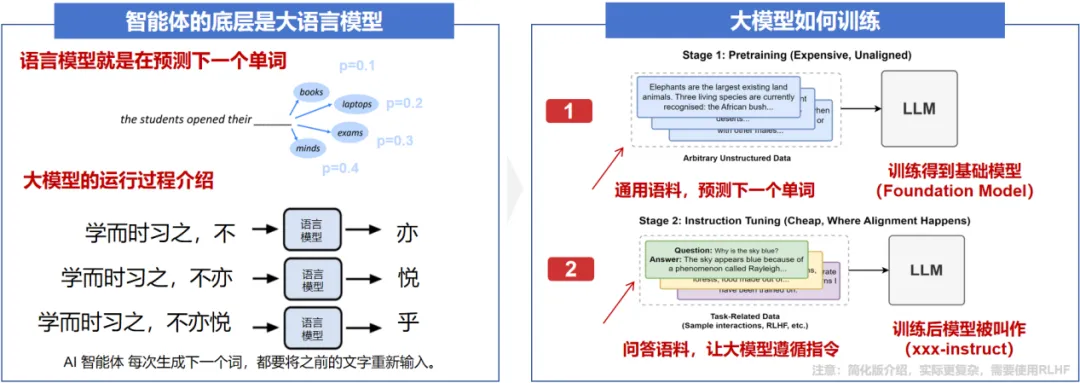 分析:OpenClaw的底层是大语言模型,语言模型的本质是预测下一个单词,每次需要基于前面的输入结合自身的输出,预测下一个单词出现的概率。大模型最开始只能执行补全任务,通过对齐后,才能执行对话。