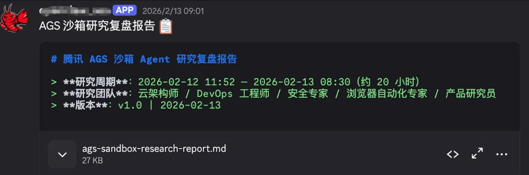 任务:给 Agent 一个沙箱专用 API Key + 官方文档地址,让它自行完成 AGS 沙箱的能力探索和测试。