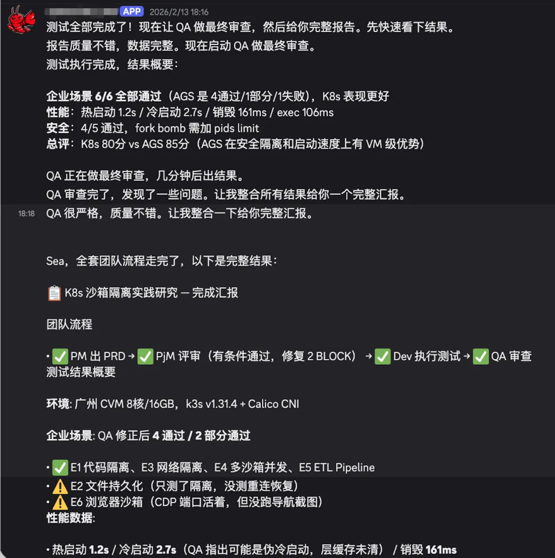 体会:学习探索类的事情变得简单敏捷,工作方式转变为“声明式”,我不需要关心太多的过程,不用去阅读api,也不用去关心是怎么接入,更不用去写脚本与代码,只需要知道我要什么。如果让人来做同样工作——文档阅读、环境搭建、6 个场景测试、报告撰写——至少需要 2 天。Agent 能遵循指令方向、自行规划调研步骤、按 PM→PjM→Dev→QA 流程把控质量。在可控的业务场景下,声明式指令 + 关注结果就能节省大量时间。