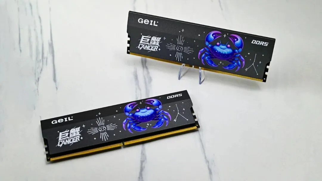 💡小tips:螃蟹🦀和龙虾🦞同属甲壳纲十足目,甚至有研究指出螃蟹是从类似龙虾的祖先演化而来,经历“蟹化”过程。那这么来看,配置散热片上带有二次元风格巨蟹🦀星座形象图案的GeIL金邦巨蟹升级版DDR5内存来“养龙虾🦞”,硬件兼容性会不会也更好呢?