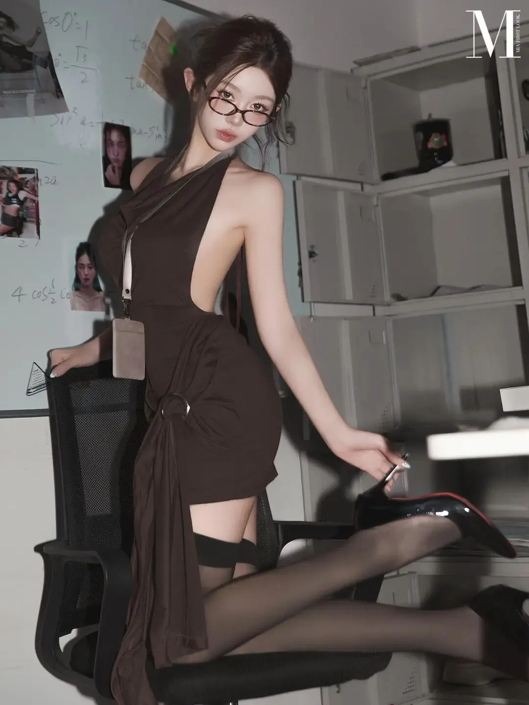 深棕裹身裙+黑色吊带袜,这套office%20lady穿搭,气场全开又知性!深棕色单肩裹身裙搭黑色吊带袜配尖头鞋,直接勾勒出好比例大长腿!金属环扣腰带收出曲线感,不规则裙摆添了份慵懒又精致的气场。往办公桌前一站,松弛又吸睛!黑框眼镜点睛,知性氛围感直接拉满~#日常穿搭 #OOTD #穿搭分享 #今日穿搭 #都市穿搭 #office穿搭 #轻熟风 #氛围感穿搭 #气质穿搭 #高级感 #裹身裙 #吊带袜