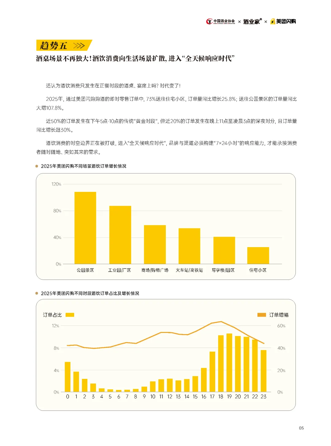 五、场景重构:酒桌文化被解构。传统酒桌场景正在被打破,饮酒进入全天候响应时代。夜宵、独酌、小聚等碎片化场景崛起,要求酒企重新思考产品定位和场景营销。