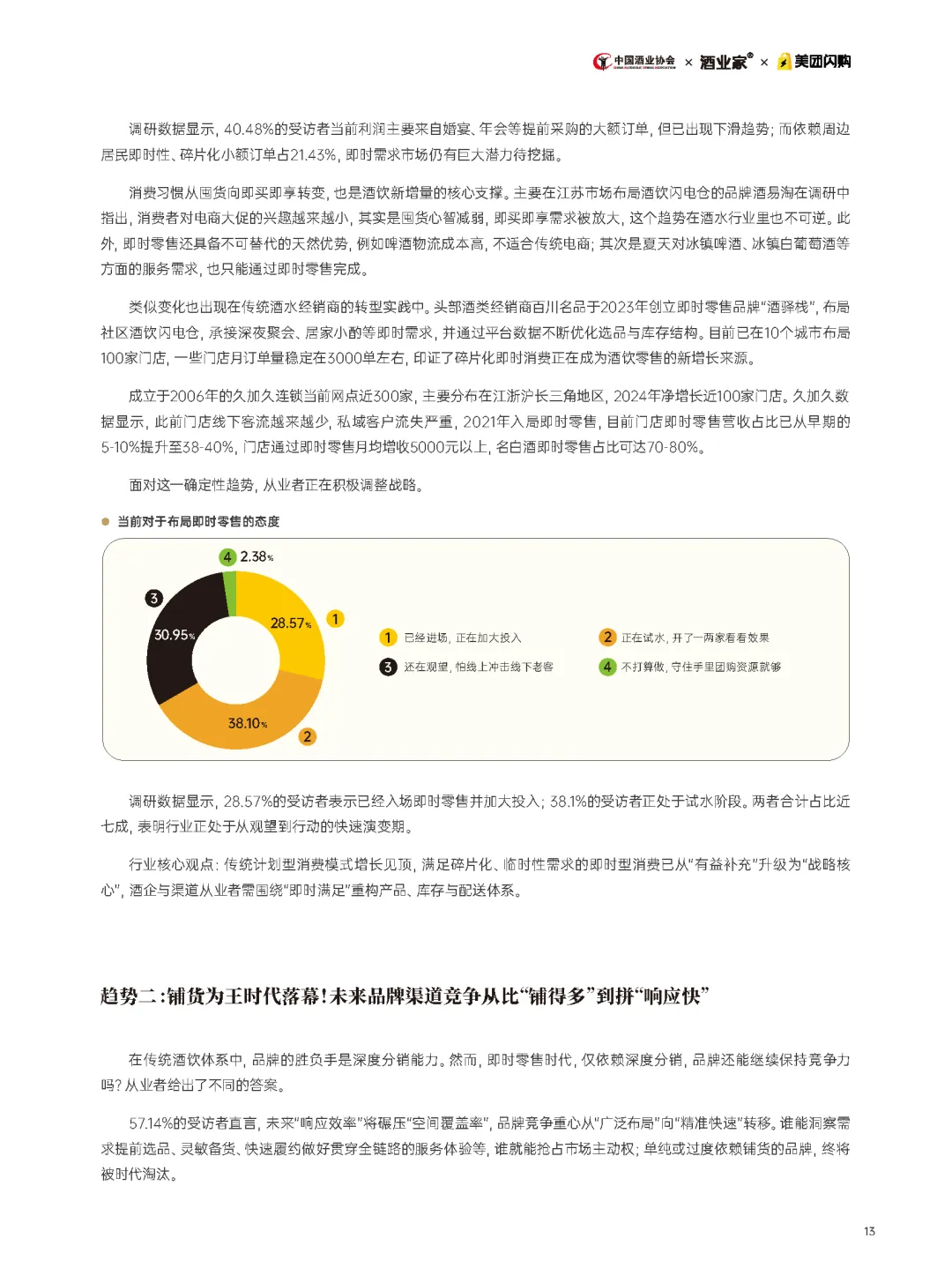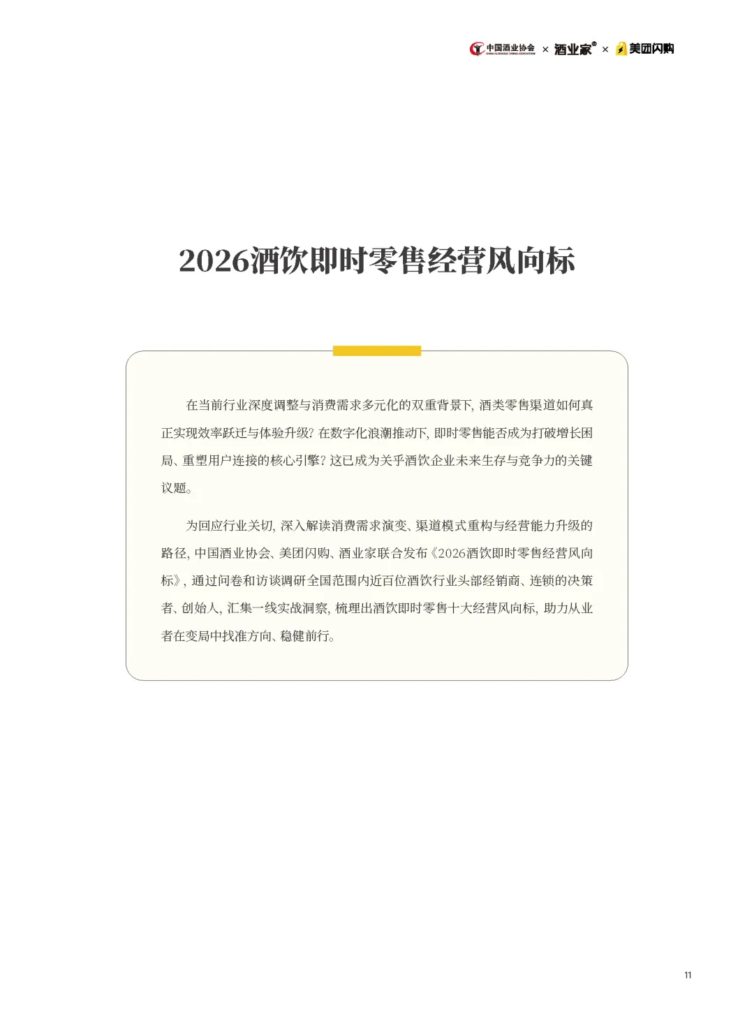 3月23日,美团闪购联合中国酒业协会、酒业家共同发布《2026酒饮即时零售经营风向标》报告,旨在为酒饮行业提供决策参考,标志着美团闪购从"即时零售实践者"升级为"行业趋势定义者"。