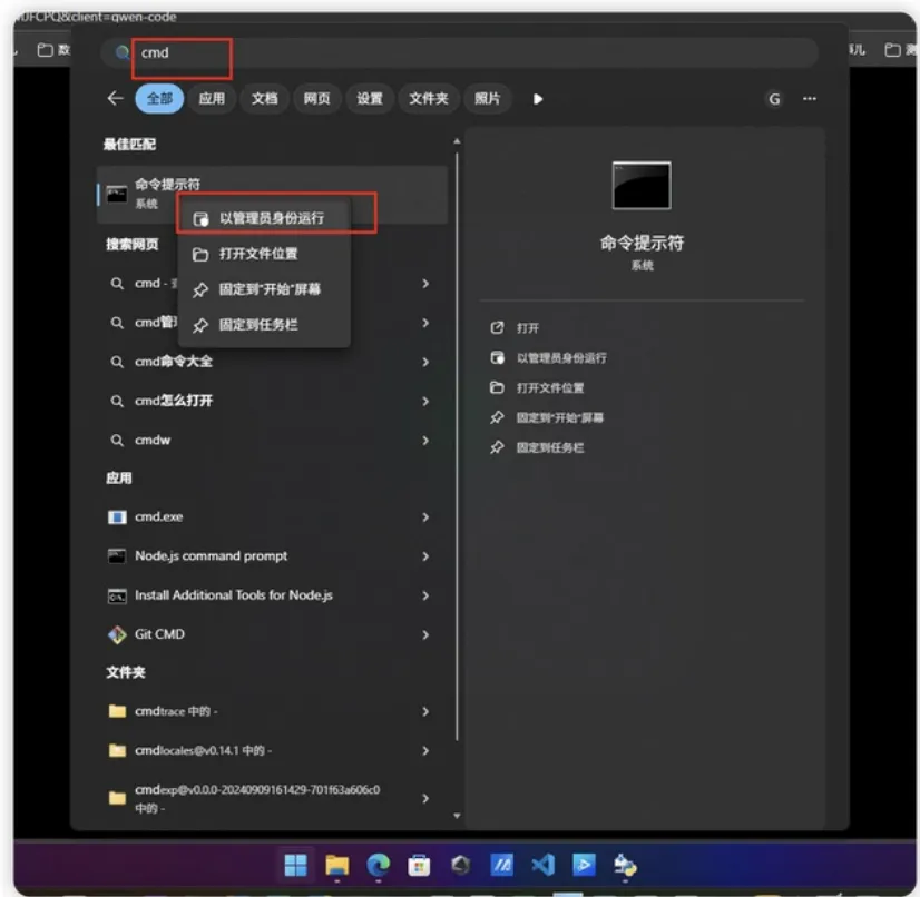 然后后续一路点击下一步(next) 即可。安装完成进行验证。在开始菜单点击右键,可能 Windows 版本不同,开始菜单样式和位置略有差异,然后点击开始,输入 cmd,看到一个”命令提示符”,然后右键点击“以管理员身份运行”。如果出现选项,点击“是”。