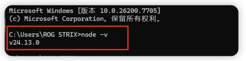 然后再对应位置输入 node -v 确认显示的是一个数字,就代表安装成功了。