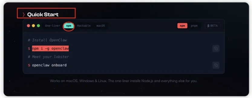 打开官网:OpenClaw — Personal AI Assistanthttps://openclaw.ai/