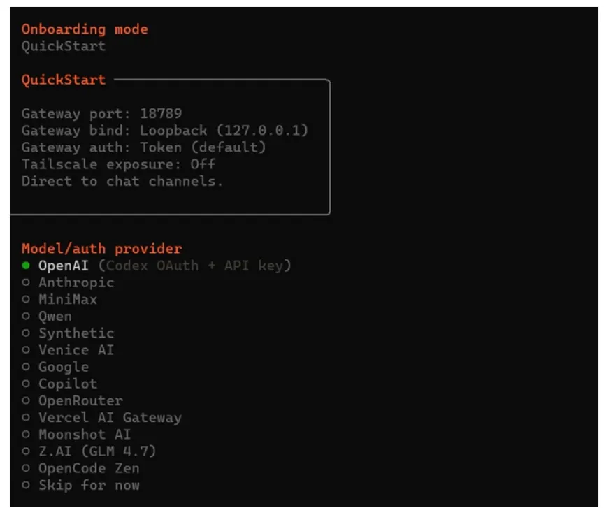 openclaw onboard输入命令后出现如下选项
