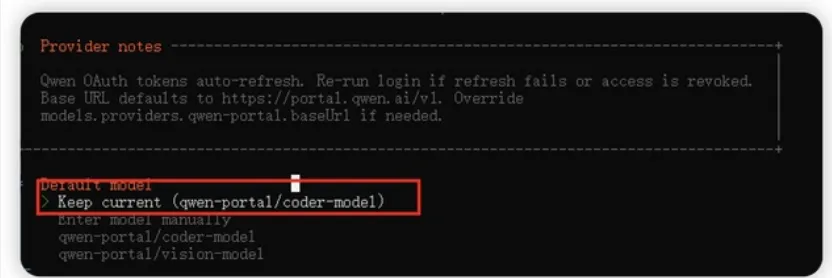 直接回车点击这个模型就行,这个就是默认的千问模型配置