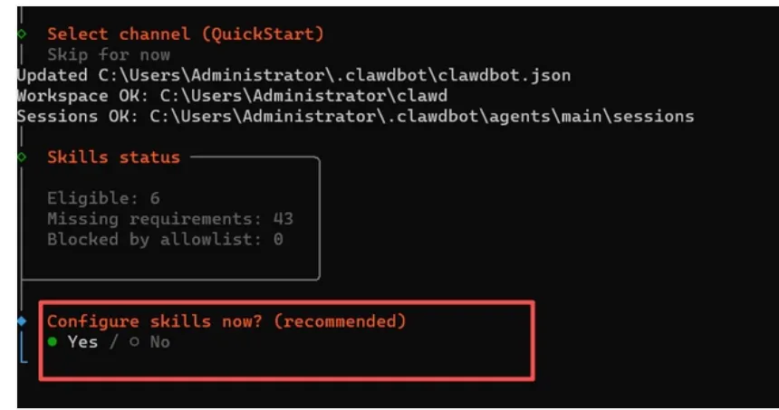 选择配置技能,目前不知道的话,也选择跳过,后面可以重新配置
