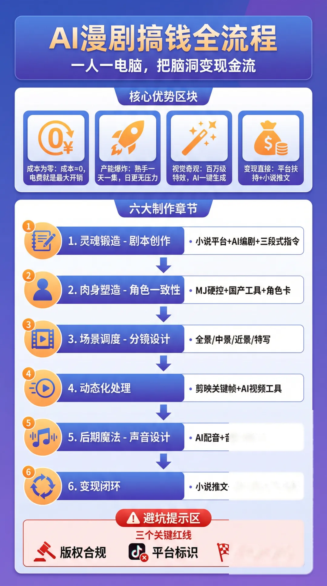 如果你也对AI漫剧创作、小说推文变现、自媒体运营感兴趣,想在互联网找到一个属于自己的稳定副业,关注公众号还可以获取:
